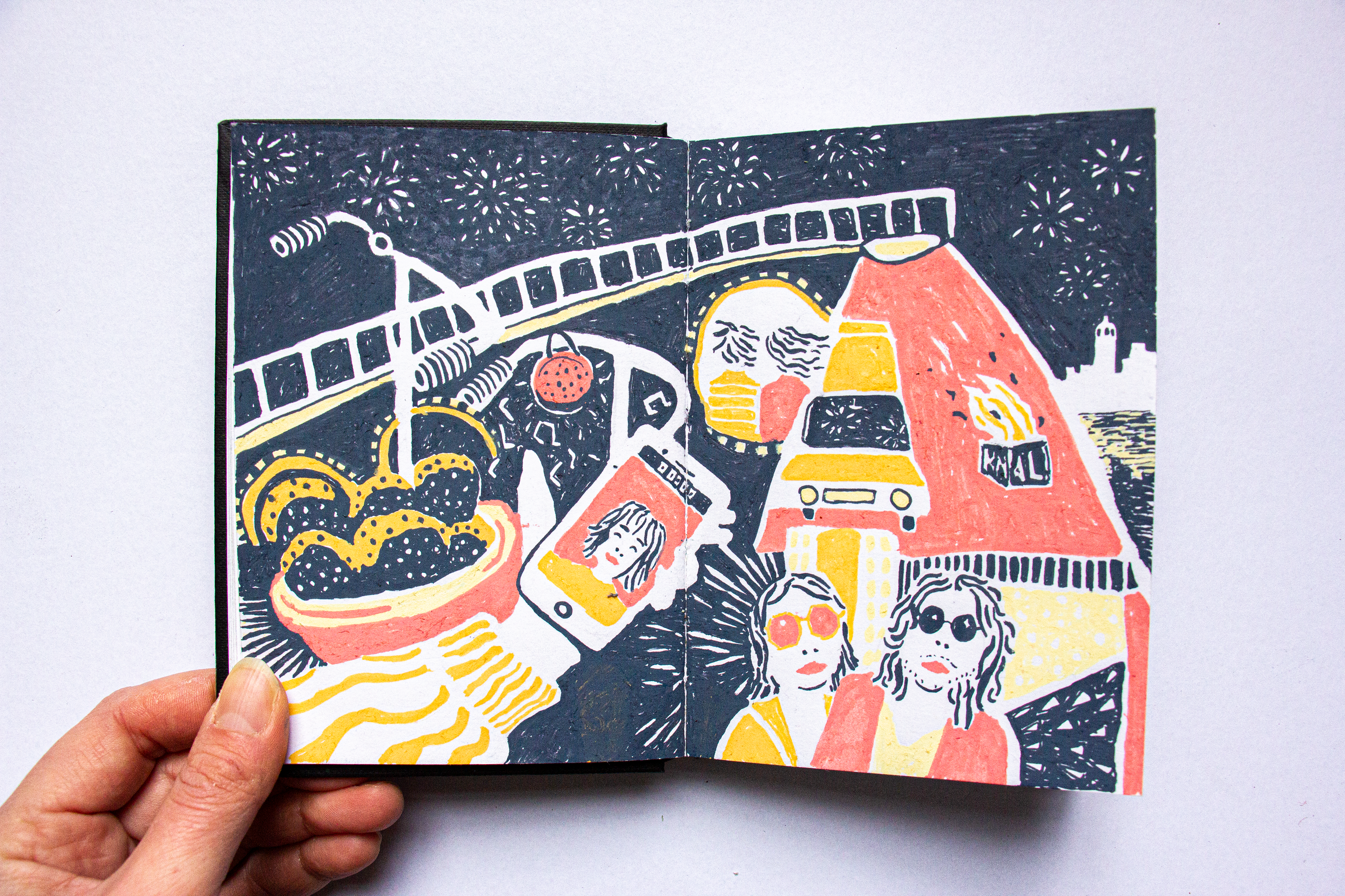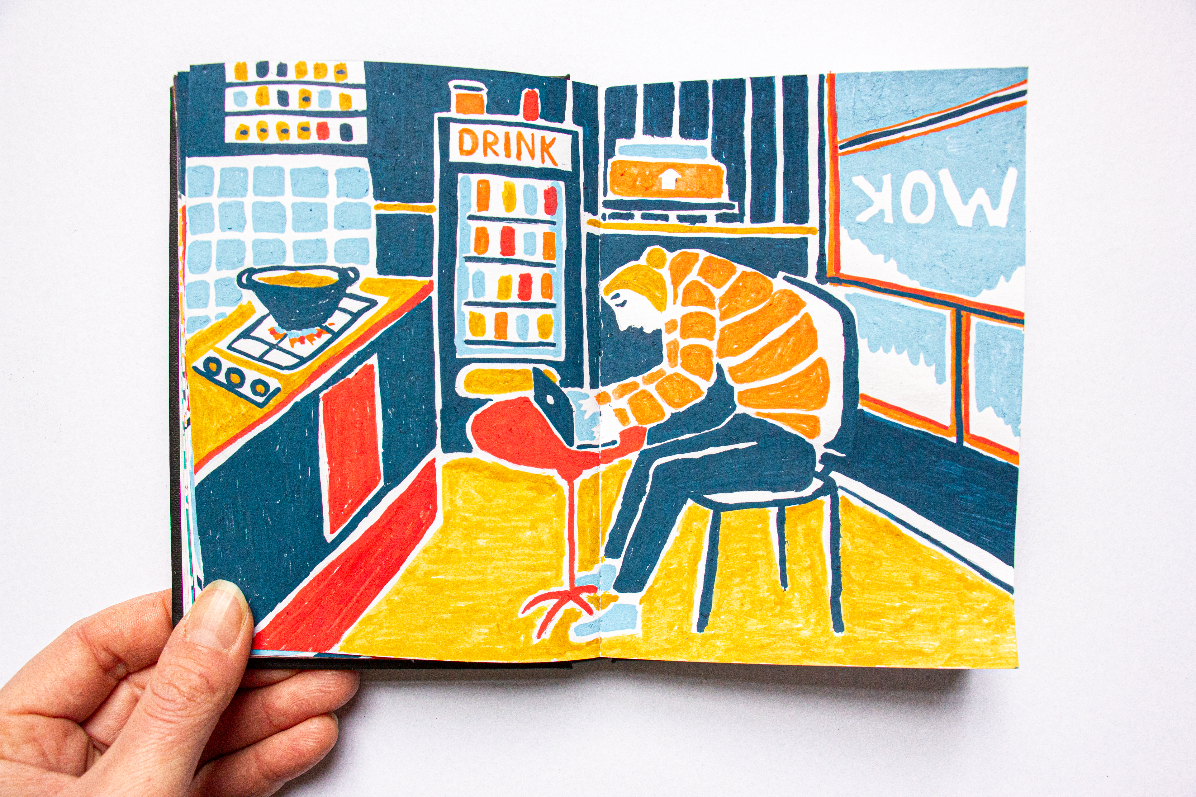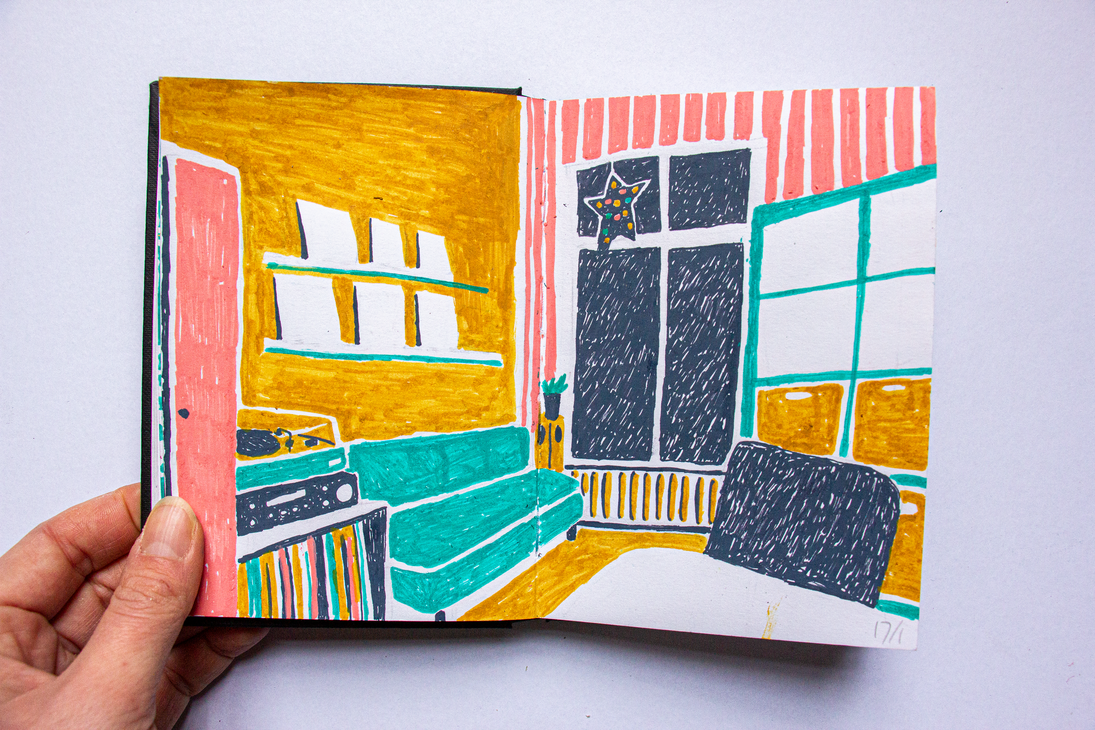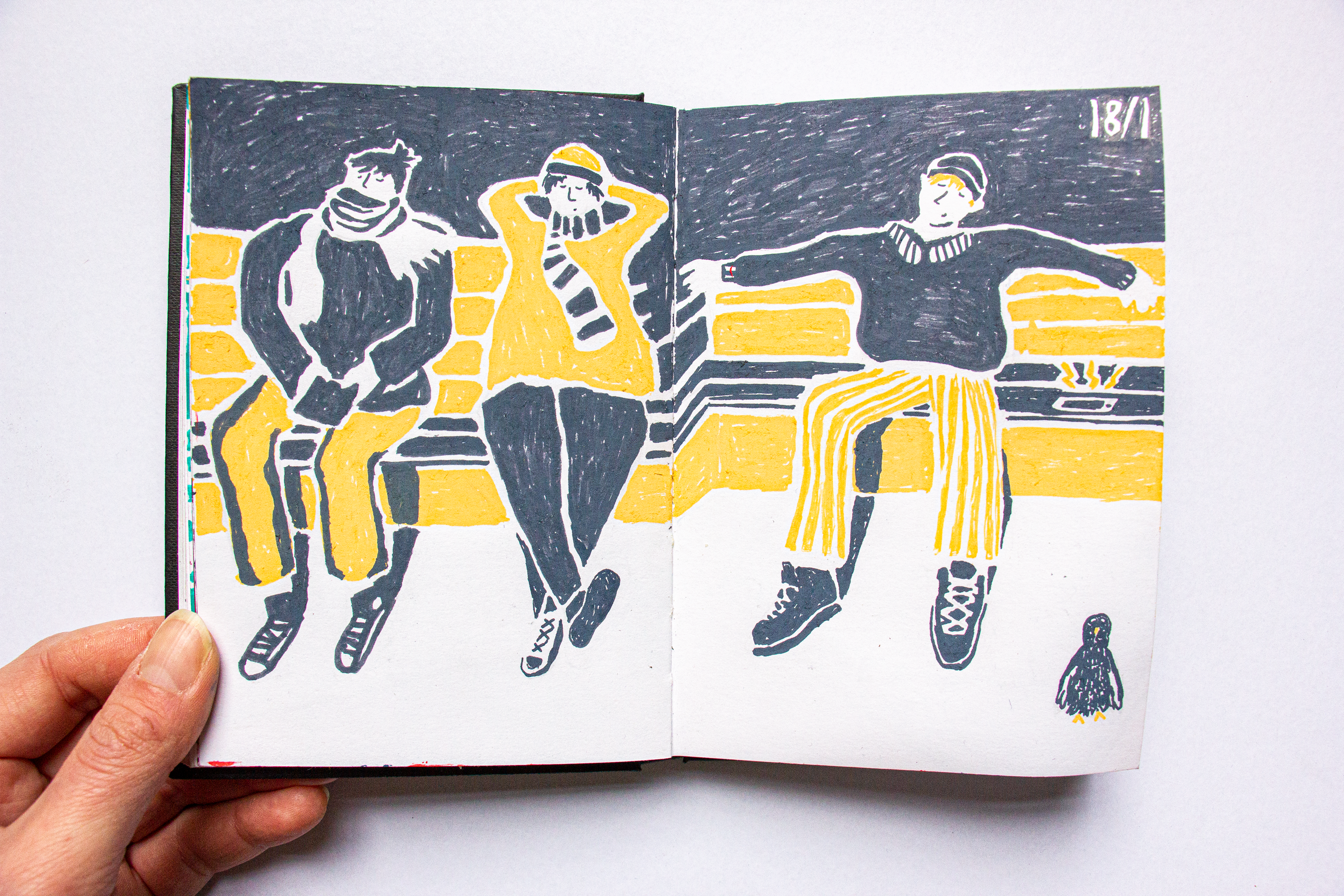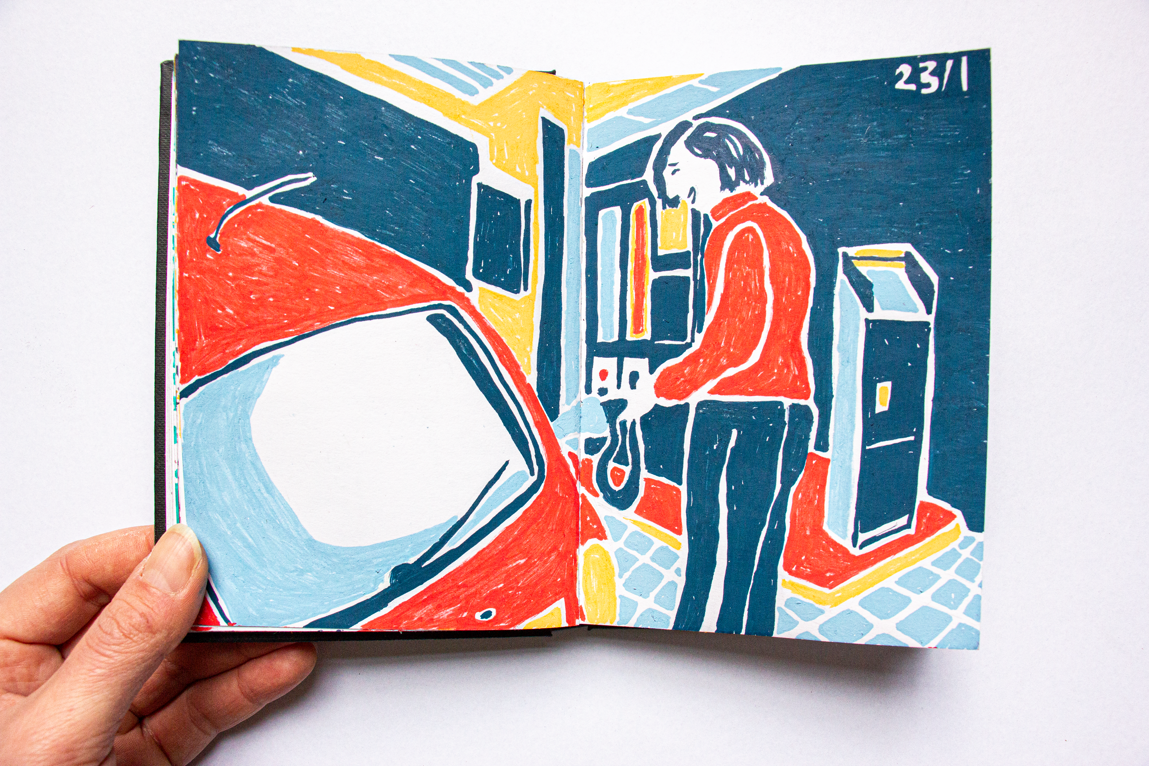 In januari heb ik een week lang elke dag getekend wat mij elke dag het meest bijgebleven was. Dit resulteerde in een diverse reeks beelden, getekend met acrylstiften